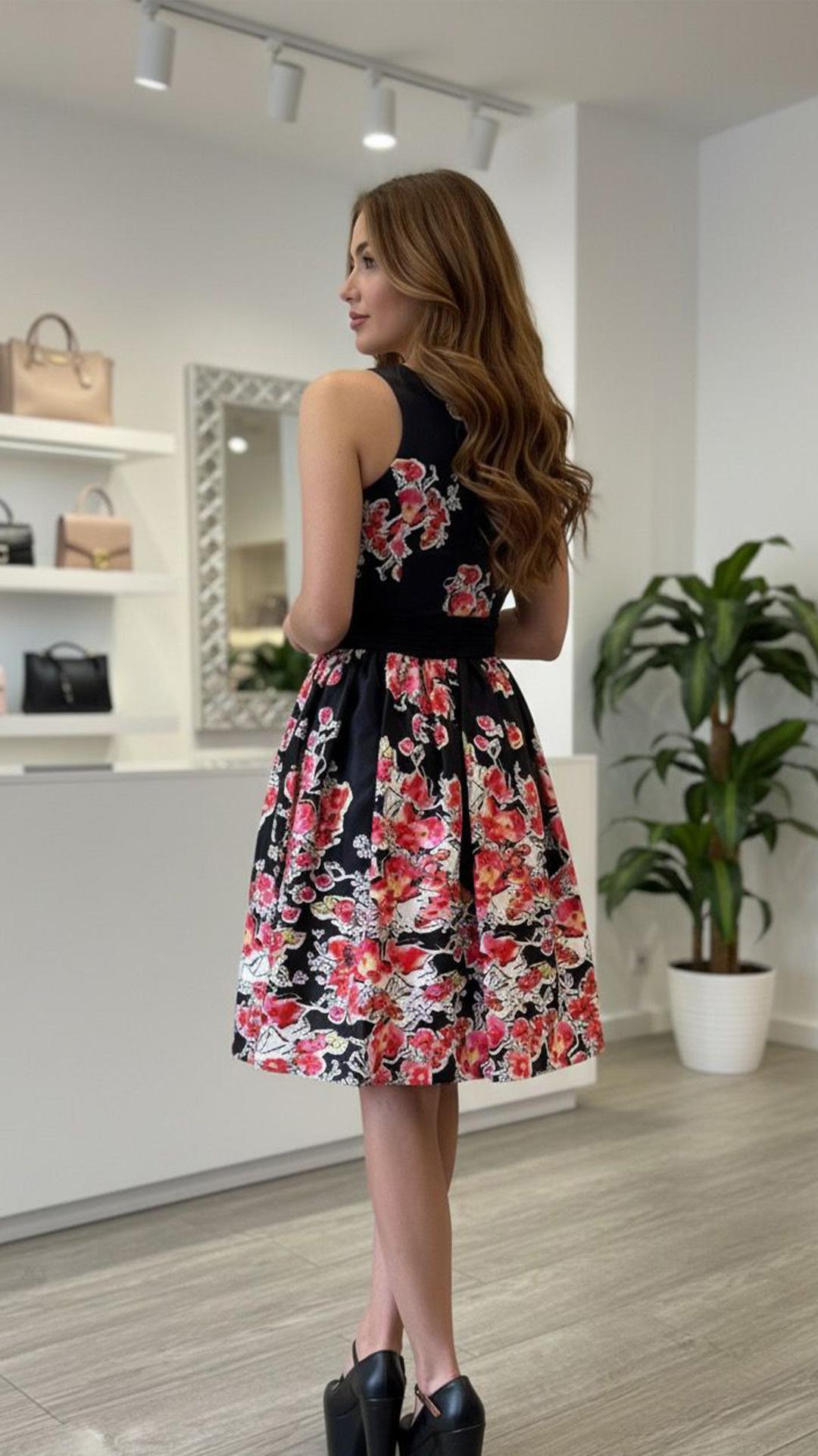 VESTIDO CORTO DE SATEN, CON ESTAMPADO .
