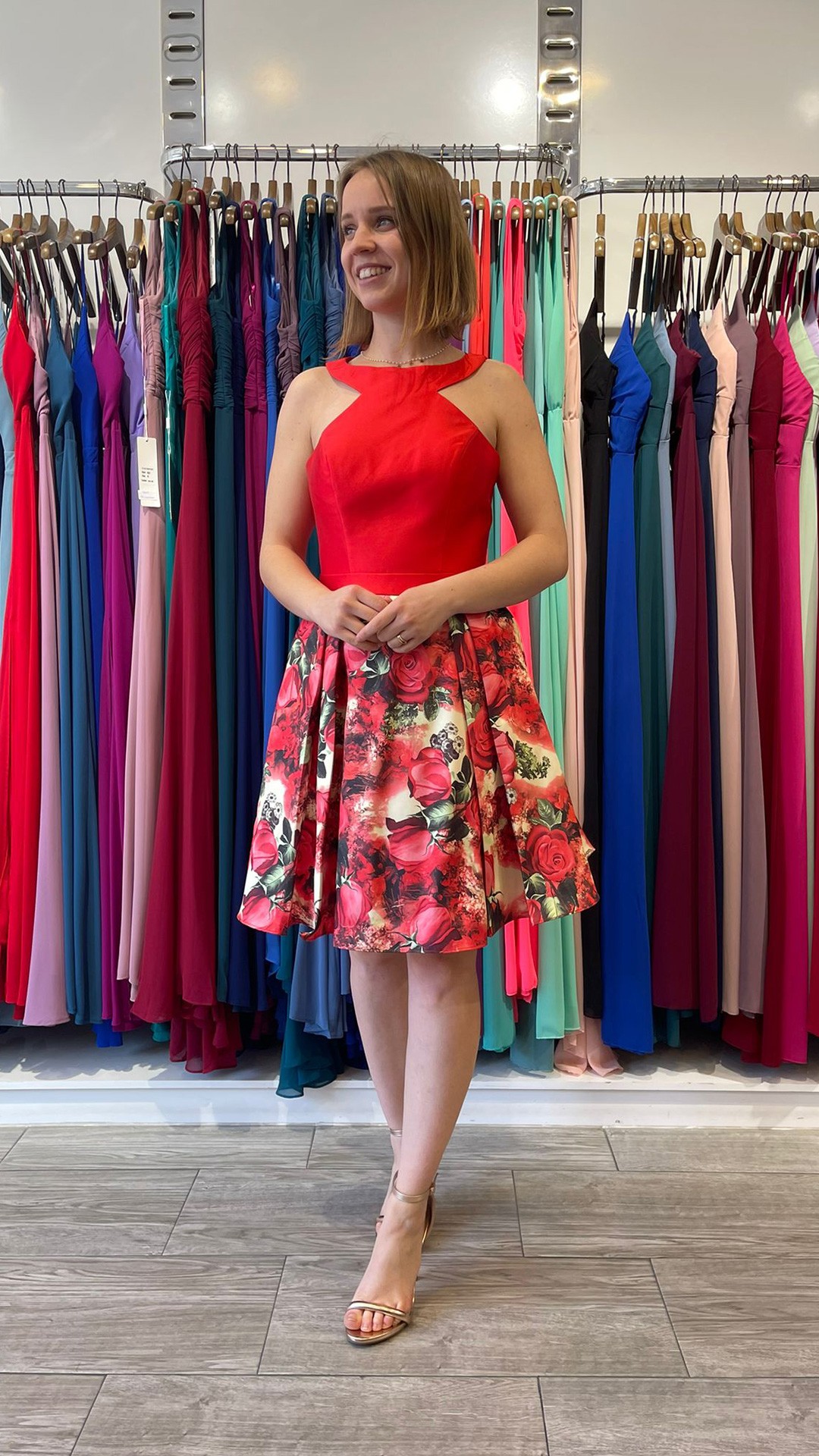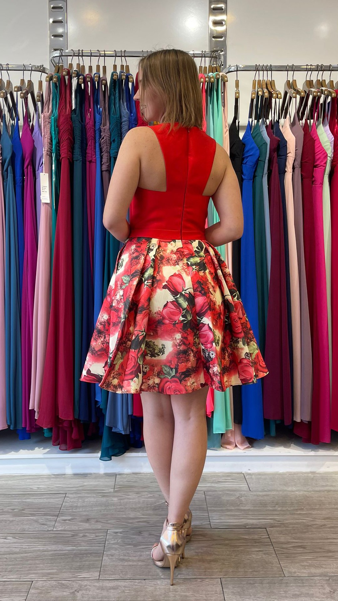 VESTIDO CORTO DE RASO CON ESTAMPADO