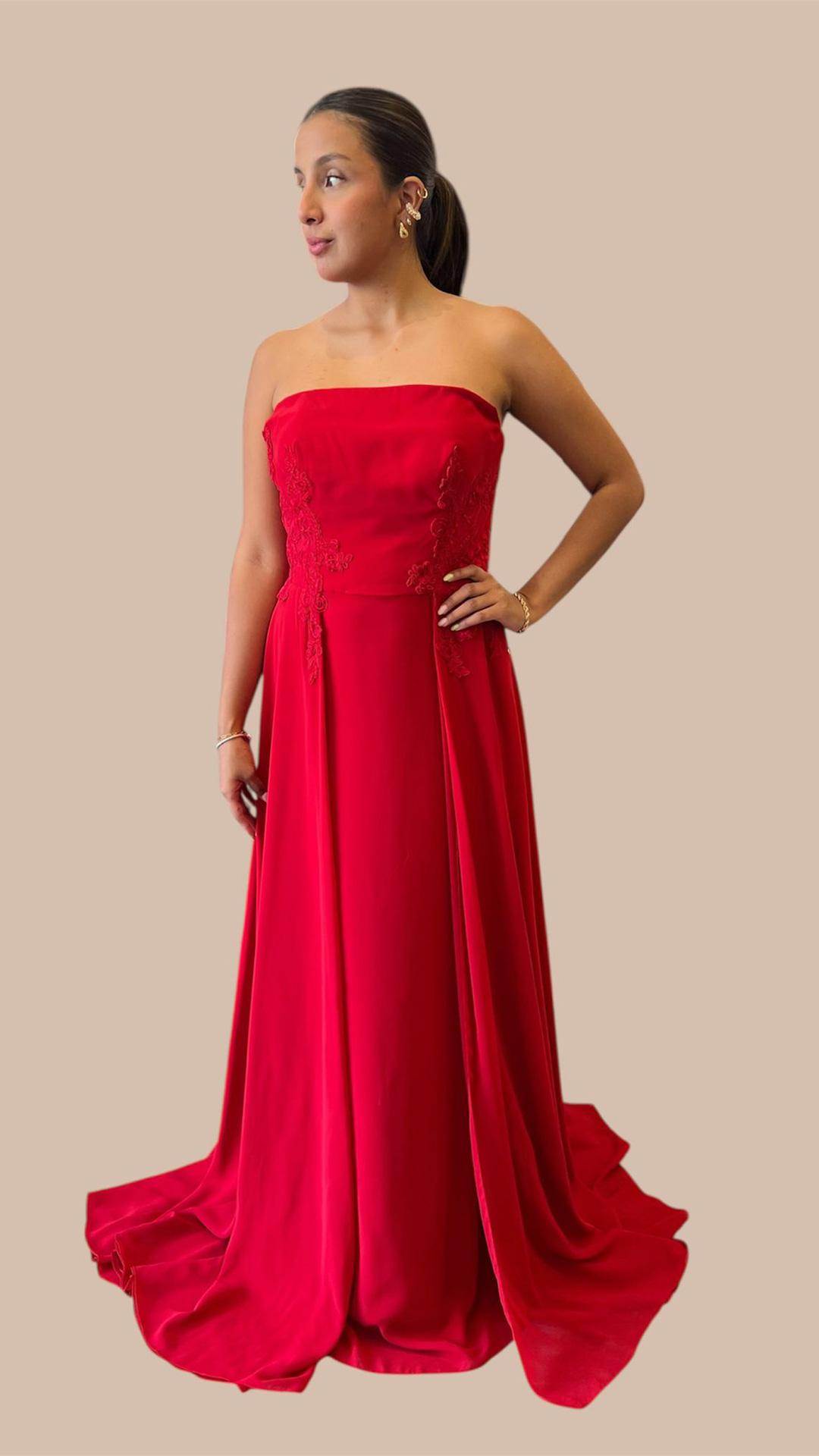 VESTIDO DE GASA , PALABRA DE HONOR CON SOBREFALDA.