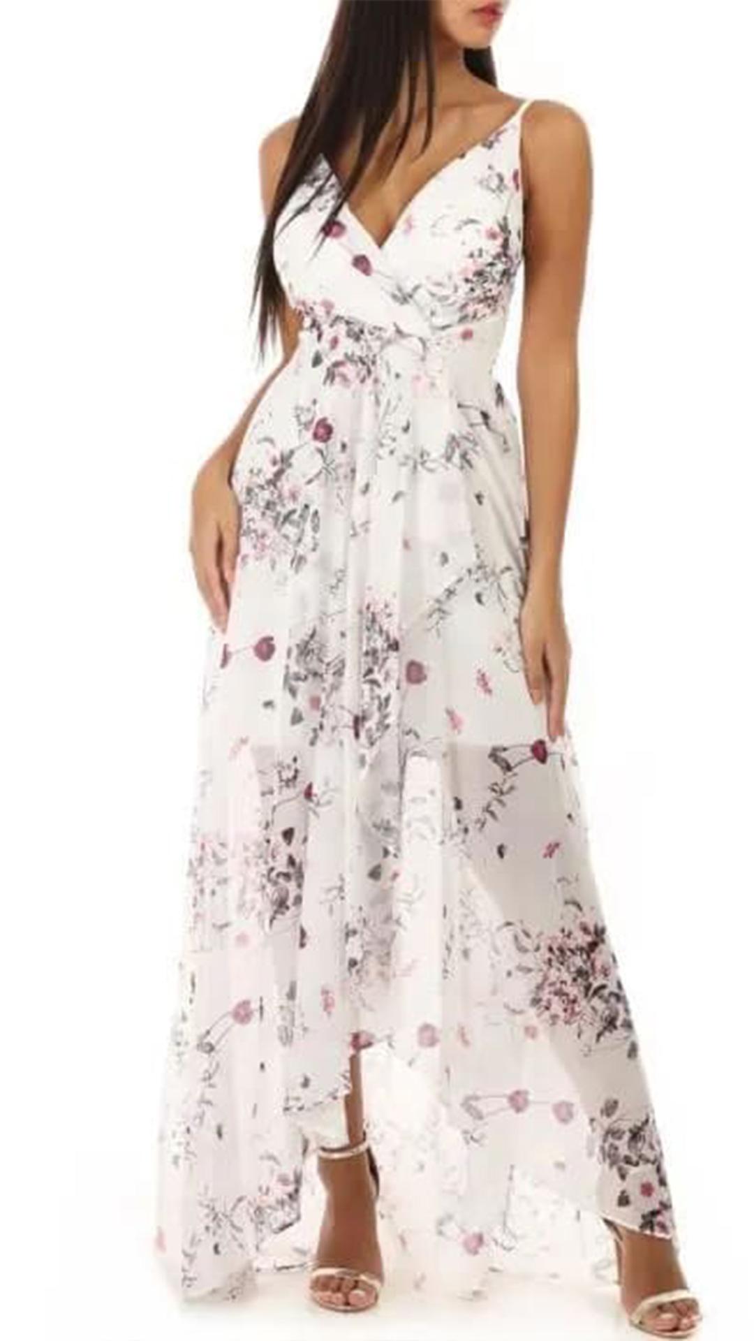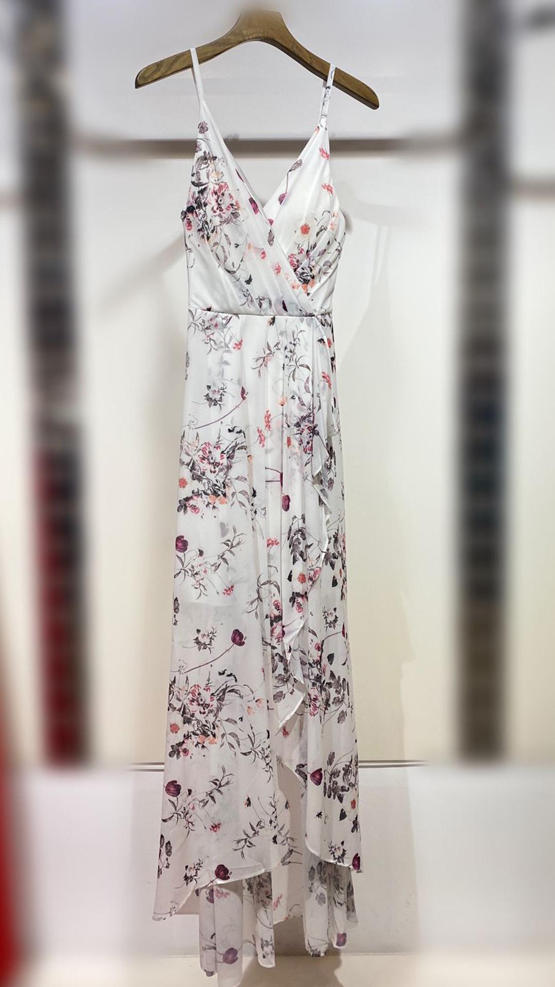 VESTIDO DE GASA CON TIRANTE FINO, ESTAMPADO FLOREAL