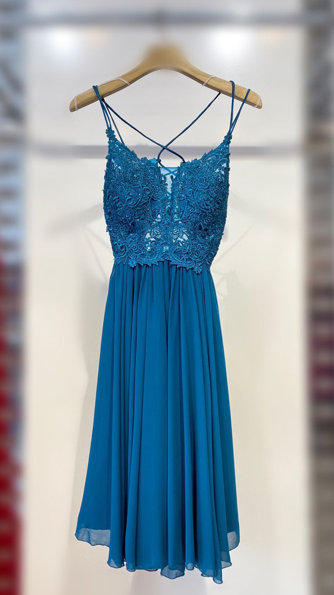 VESTIDO CORTO DE TIRANTE FINO Y BRILLOS EN LA PARTE SUPERIOR.