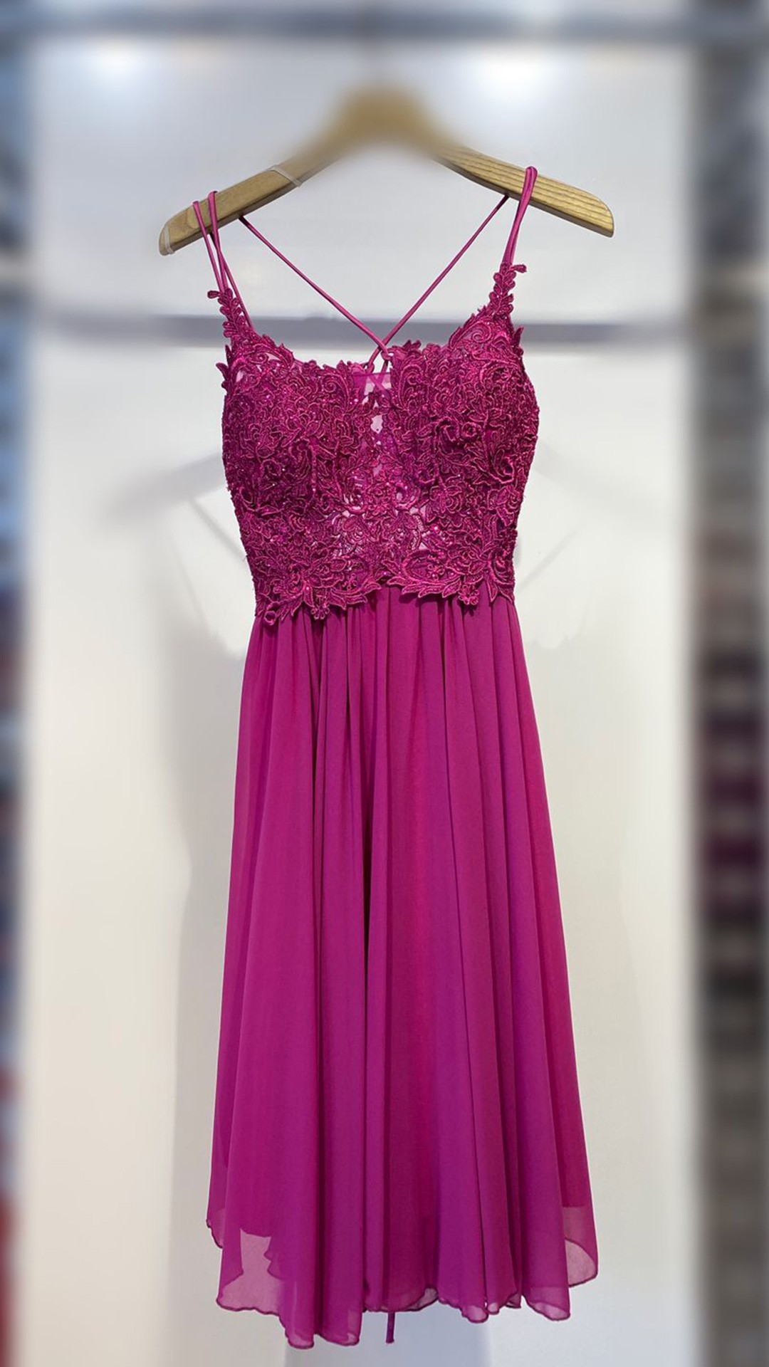 VESTIDO CORTO DE TIRANTE FINO Y BRILLOS EN LA PARTE SUPERIOR.