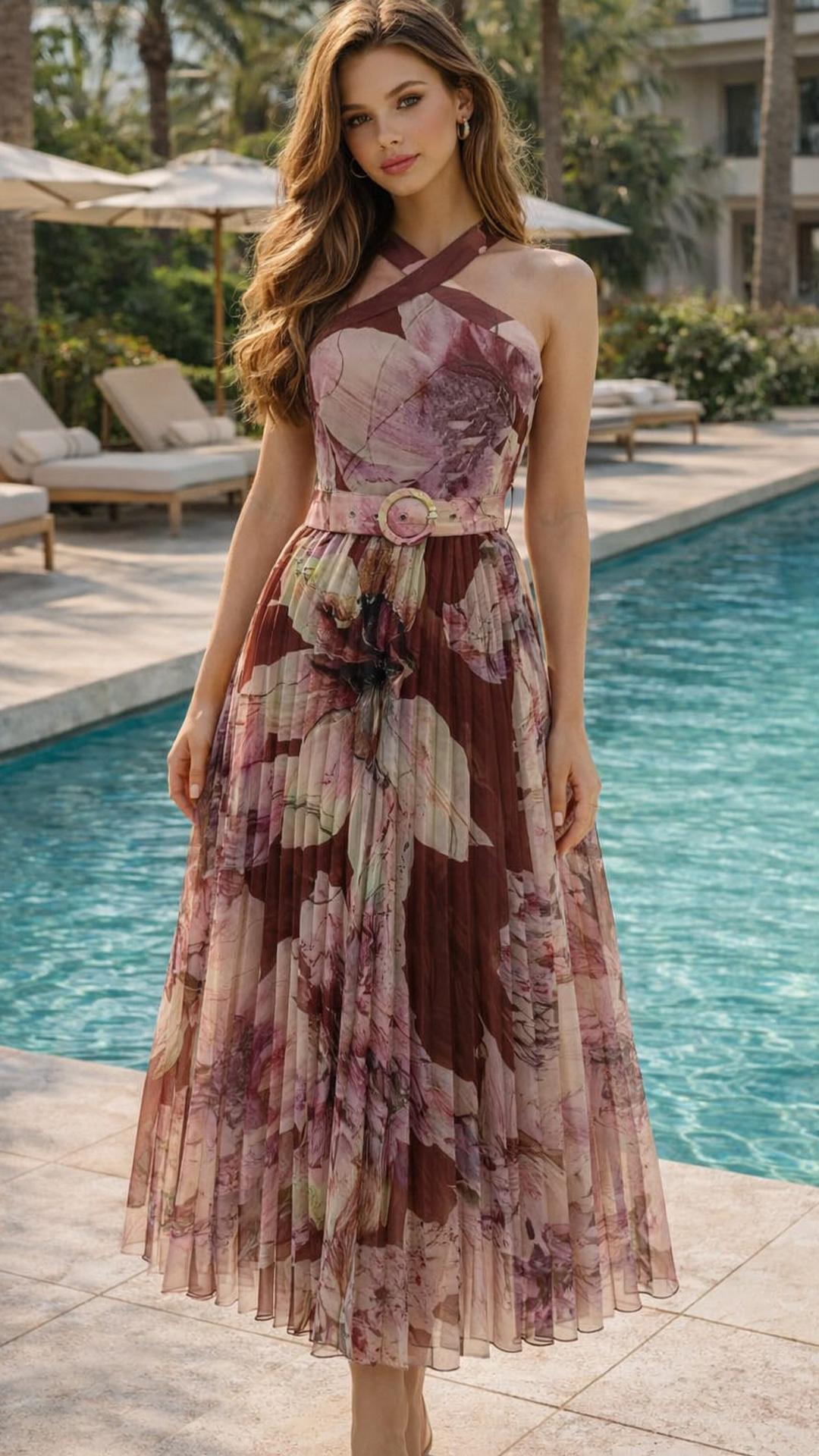 VESTIDO MIDI , DE ESTAMPADO FLORAL.