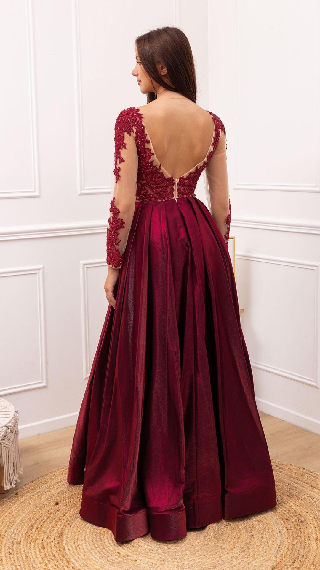 VESTIDO CORTE PRINCESA, CON MANGAS TRASNPARENTES.