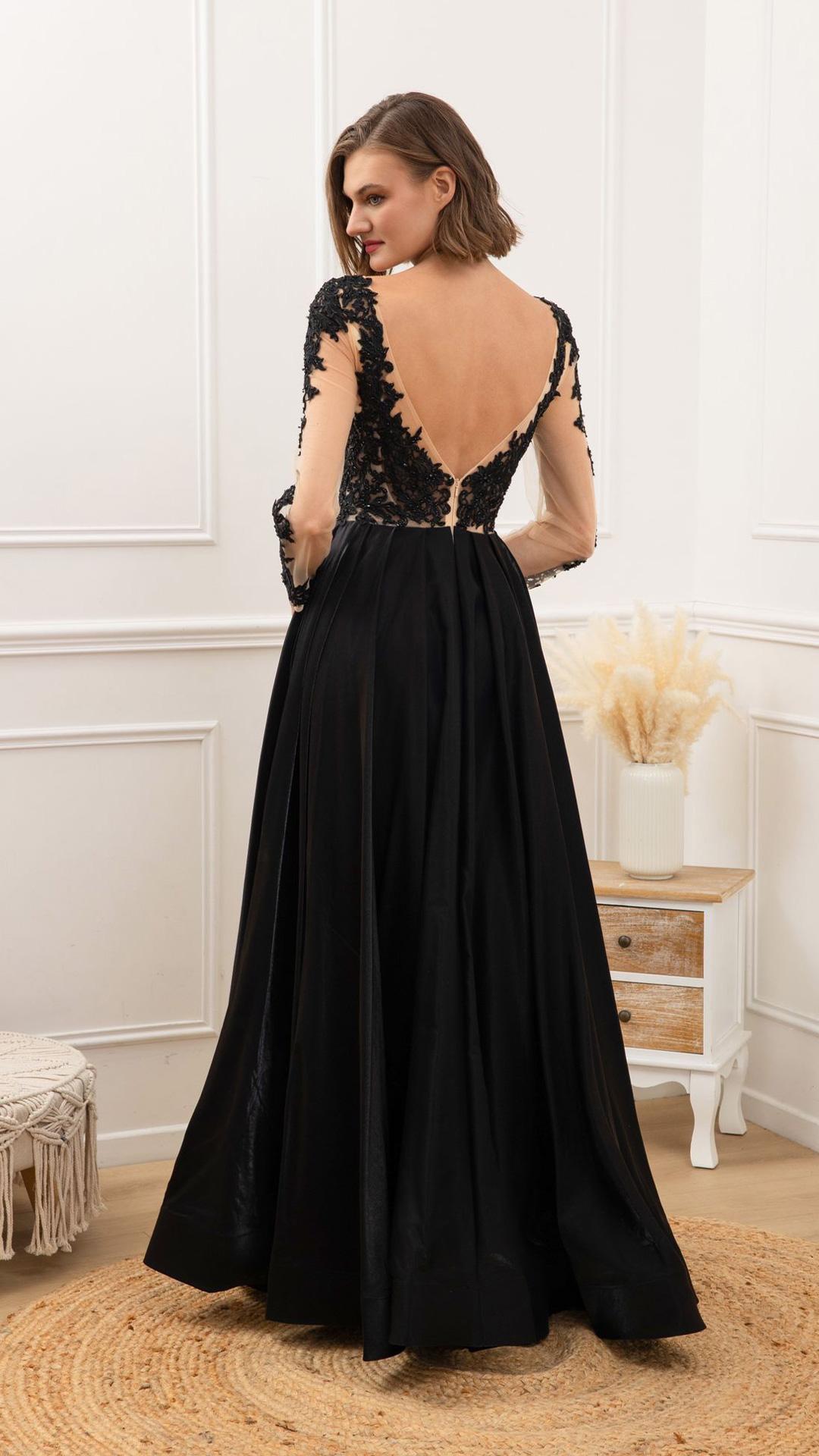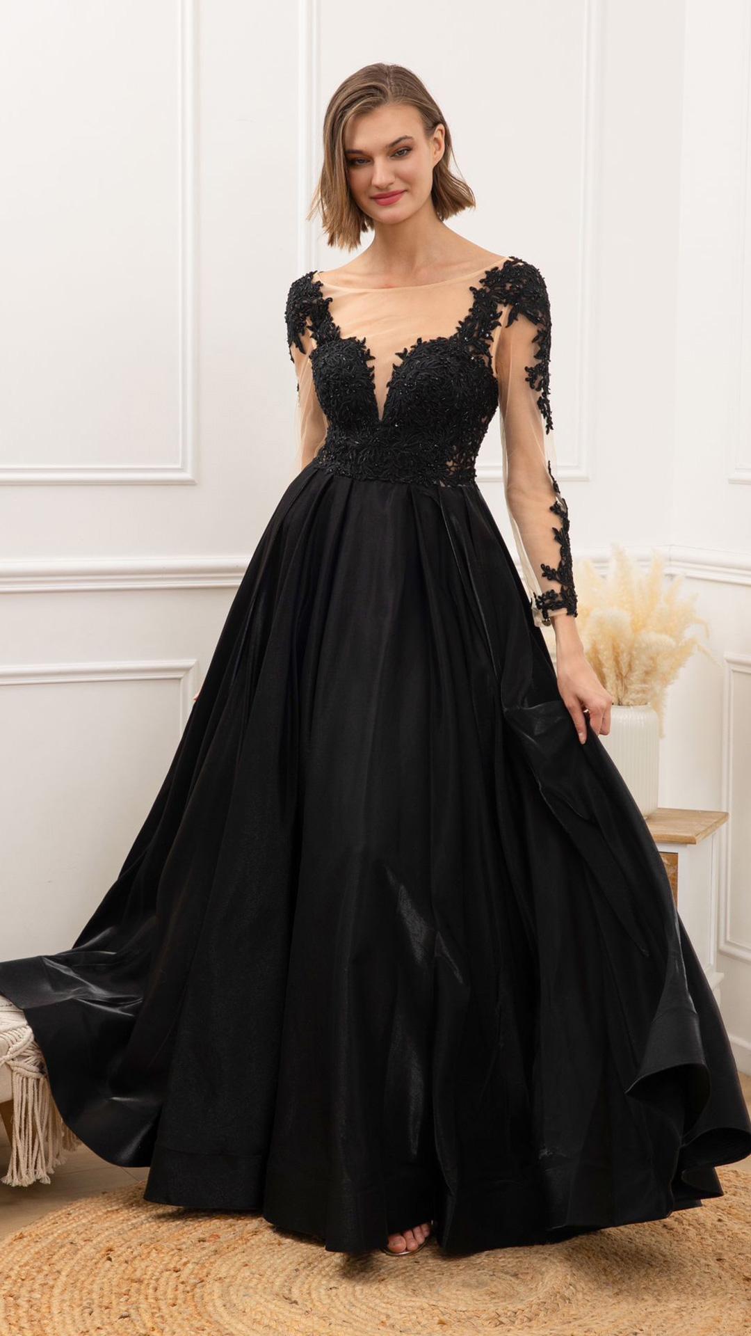 VESTIDO CORTE PRINCESA, CON MANGAS TRASNPARENTES.