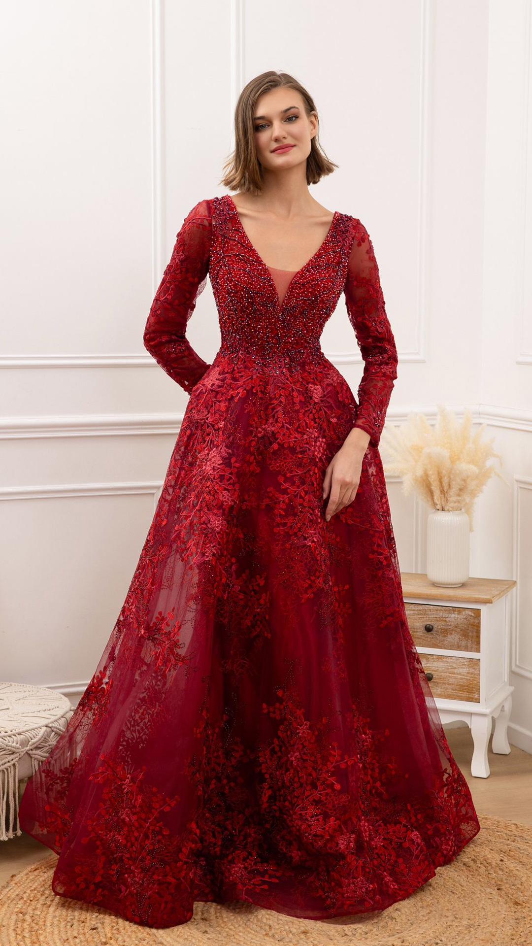 VESTIDO CORTE PRINCESA, CON MANGAS.