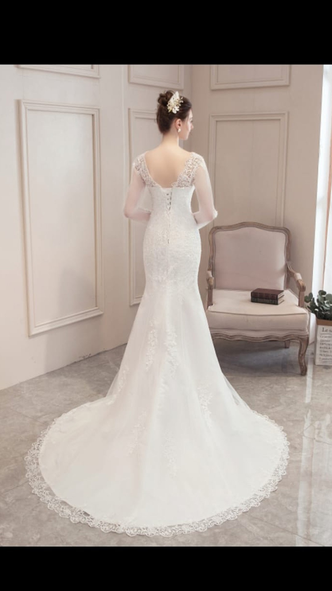 VESTIDO SIRENA CON MANGA TRANSPARENTE.