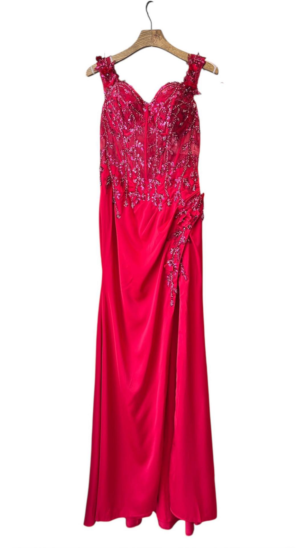 VESTIDO CORTE SIRENA , DE CORSET CON BRILLOS.