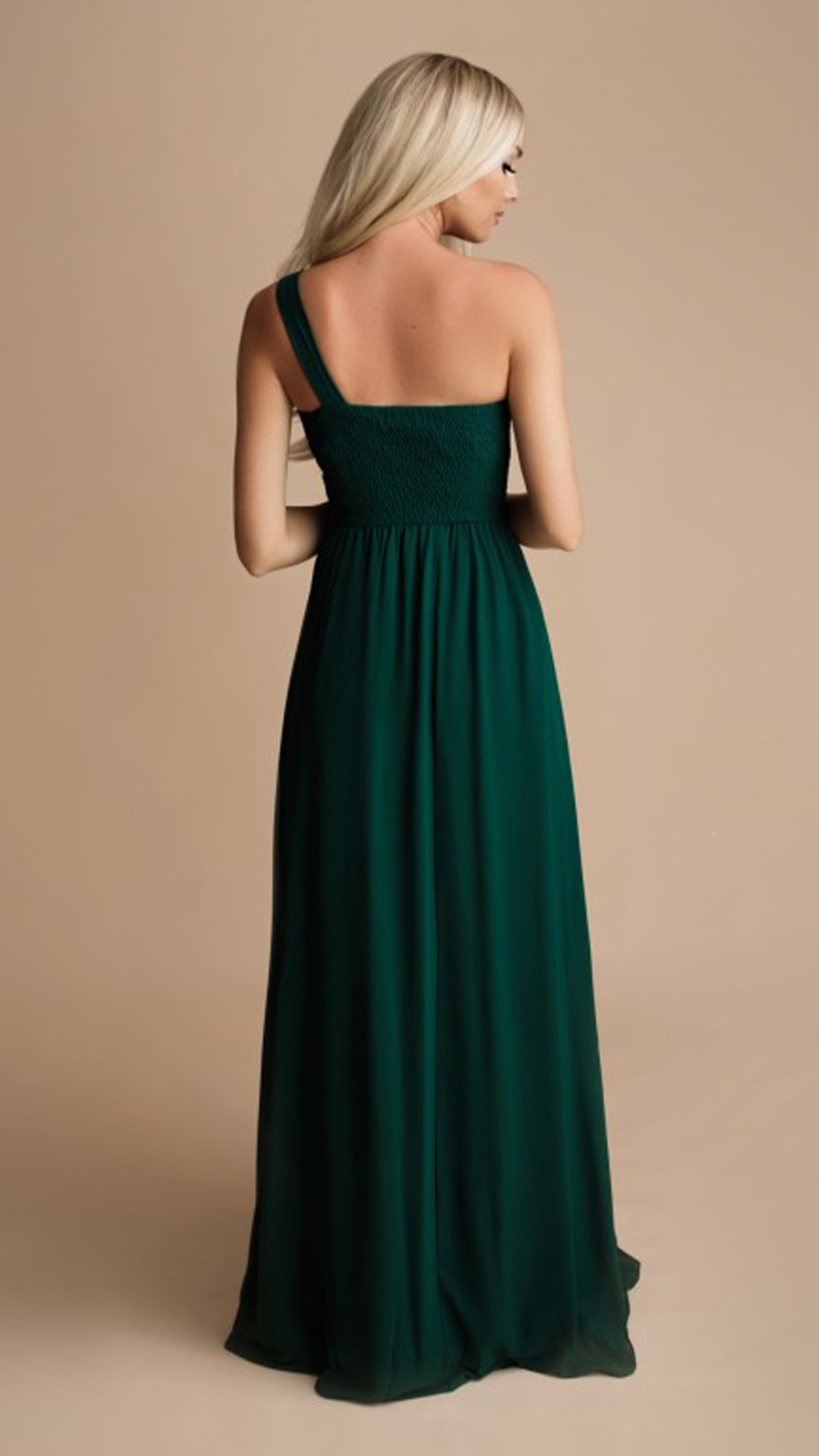 VESTIDO DE GASA DE UN TIRANTE CON ABERTURA EN LA PIERNA.