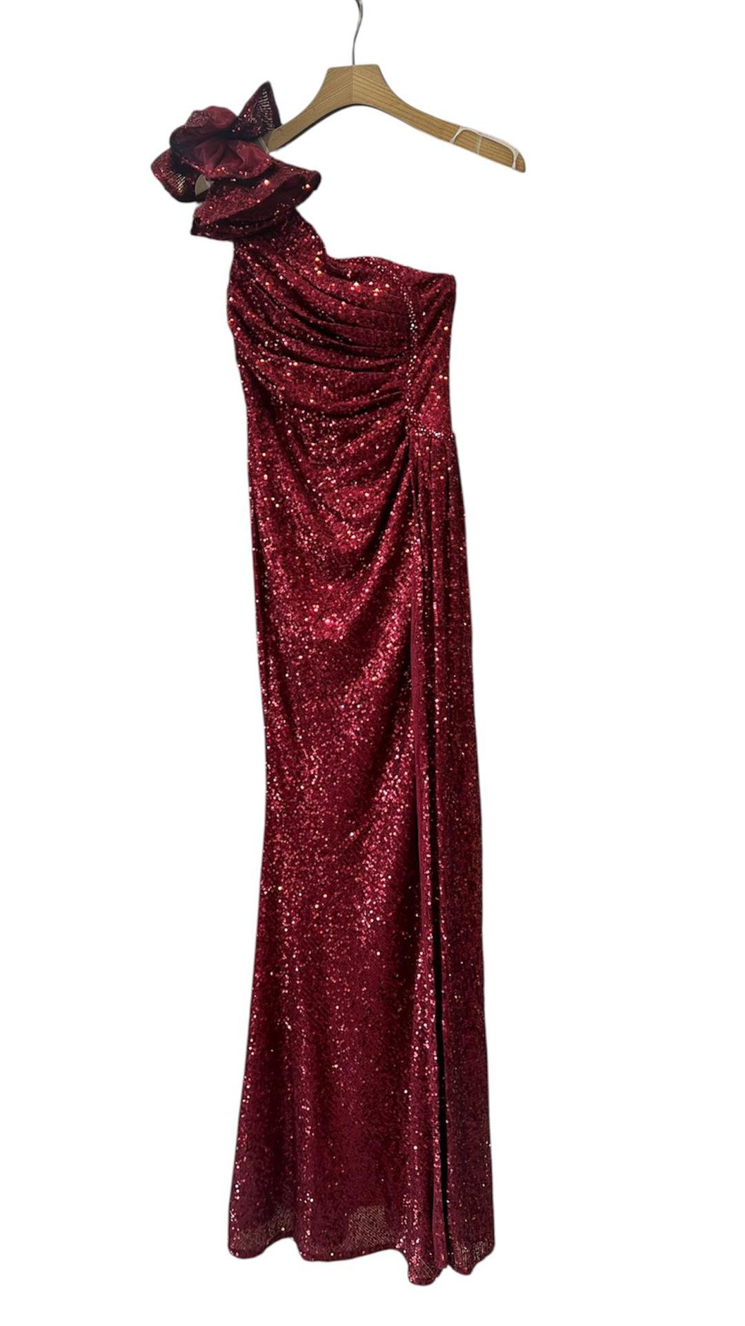 VESTIDO CORTE SIRENA DE UN TIRANTE DE LENTEJUELAS.