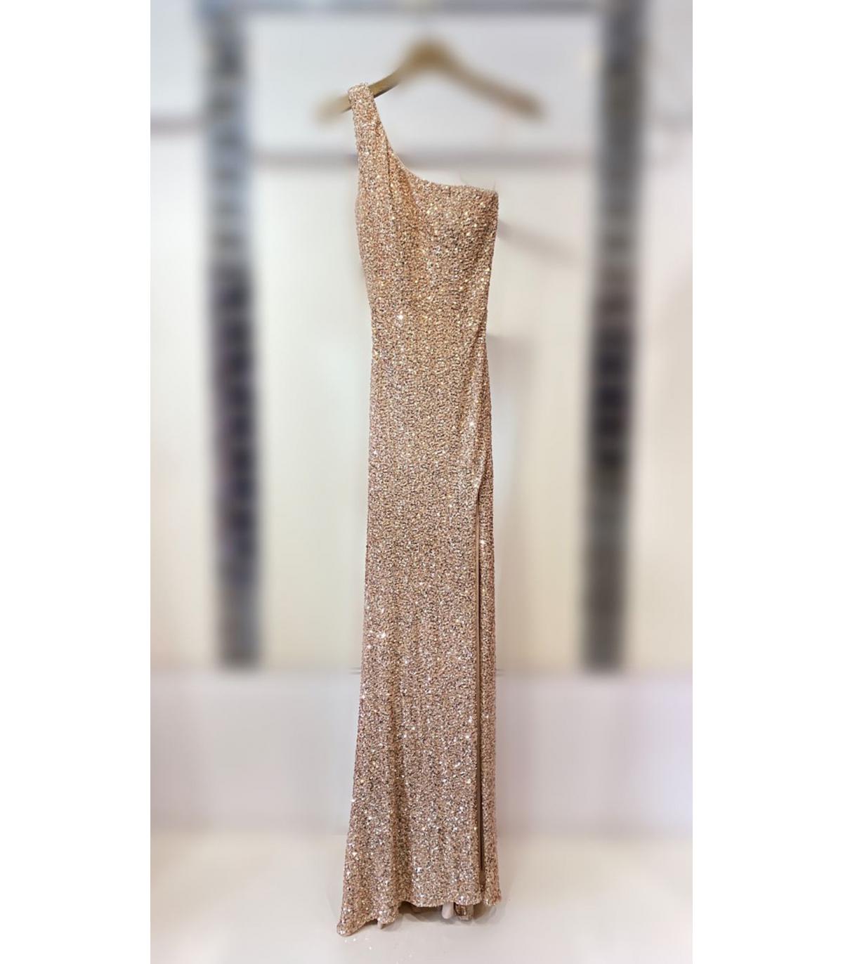 VESTIDO CORTE SIRENA, DE LENTEJUELAS , LLEVA ABERTURA EN LA PIERNA, Y ESPALDA DESCUBIERTA.