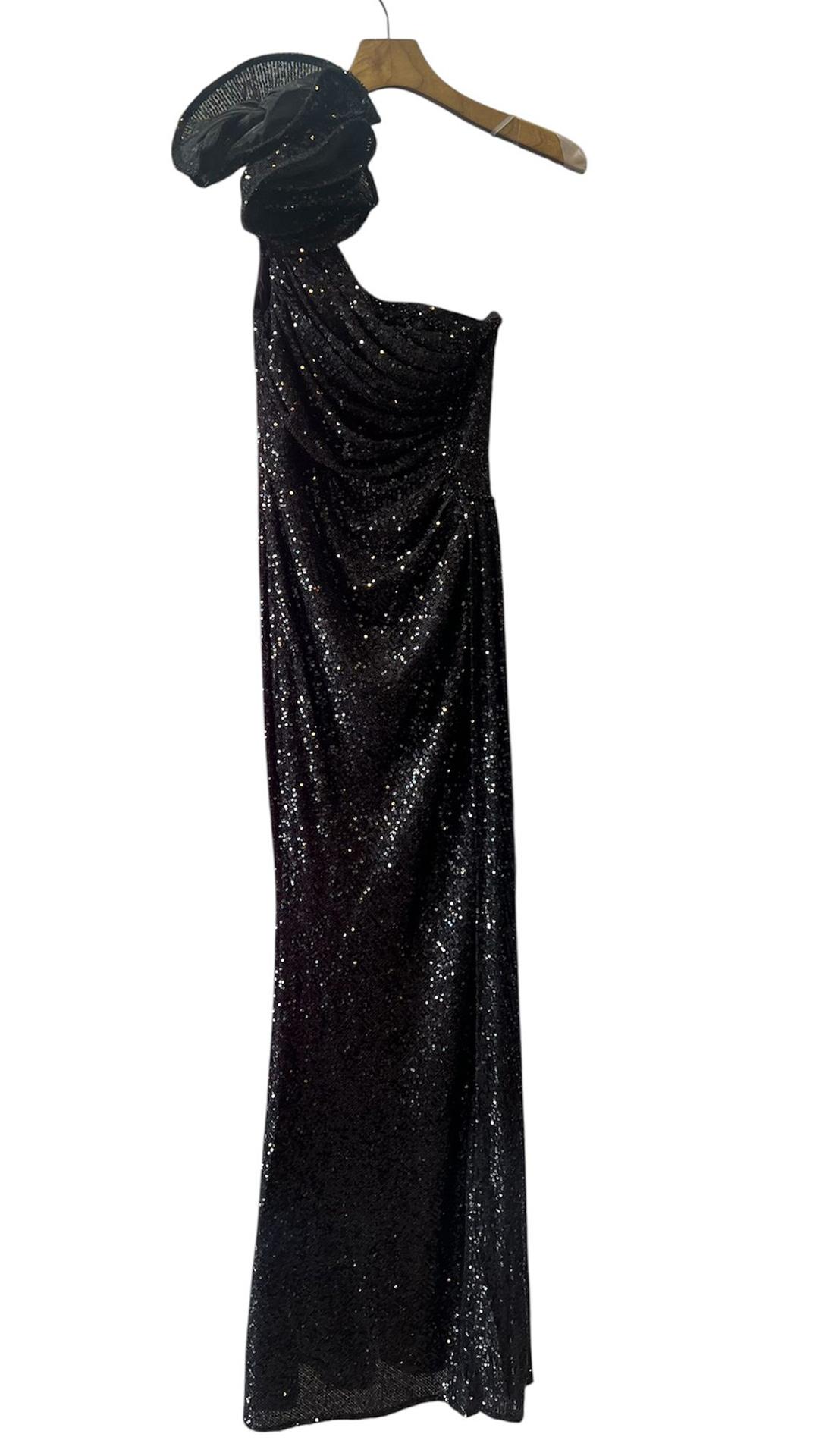 VESTIDO CORTE SIRENA DE UN TIRANTE DE LENTEJUELAS.