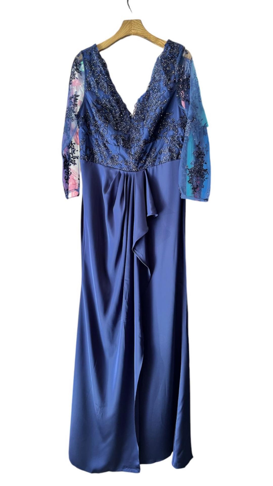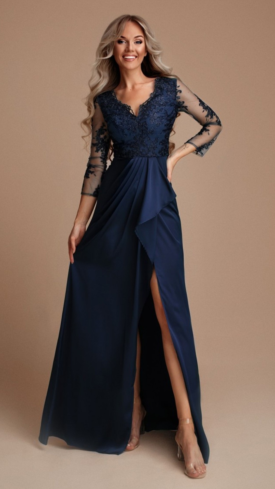 VESTIDO LARGO DE SATEN CON LA PARTE SUPERIOR DE ENCAJE.