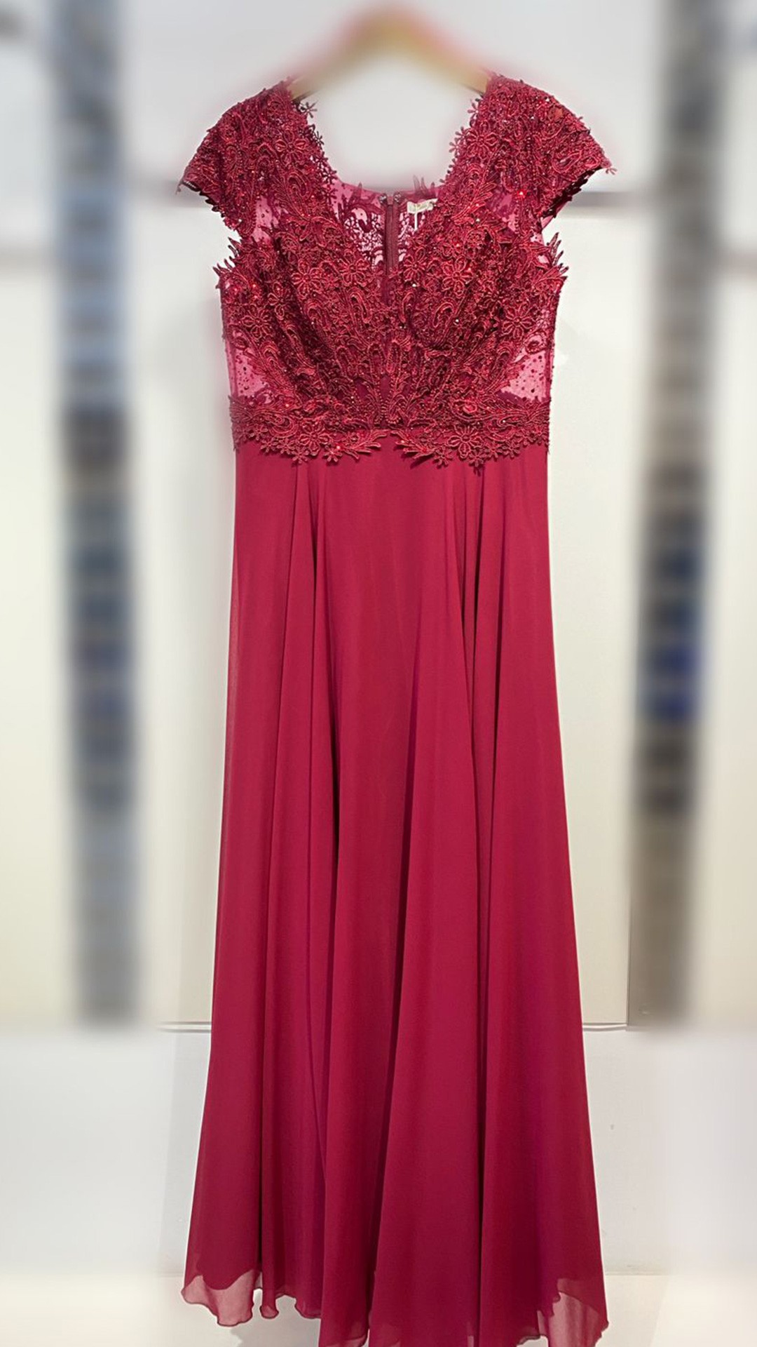 VESTIDO LARGO DE GASA CON PIEDRAS Y TRANSPARENCIAS