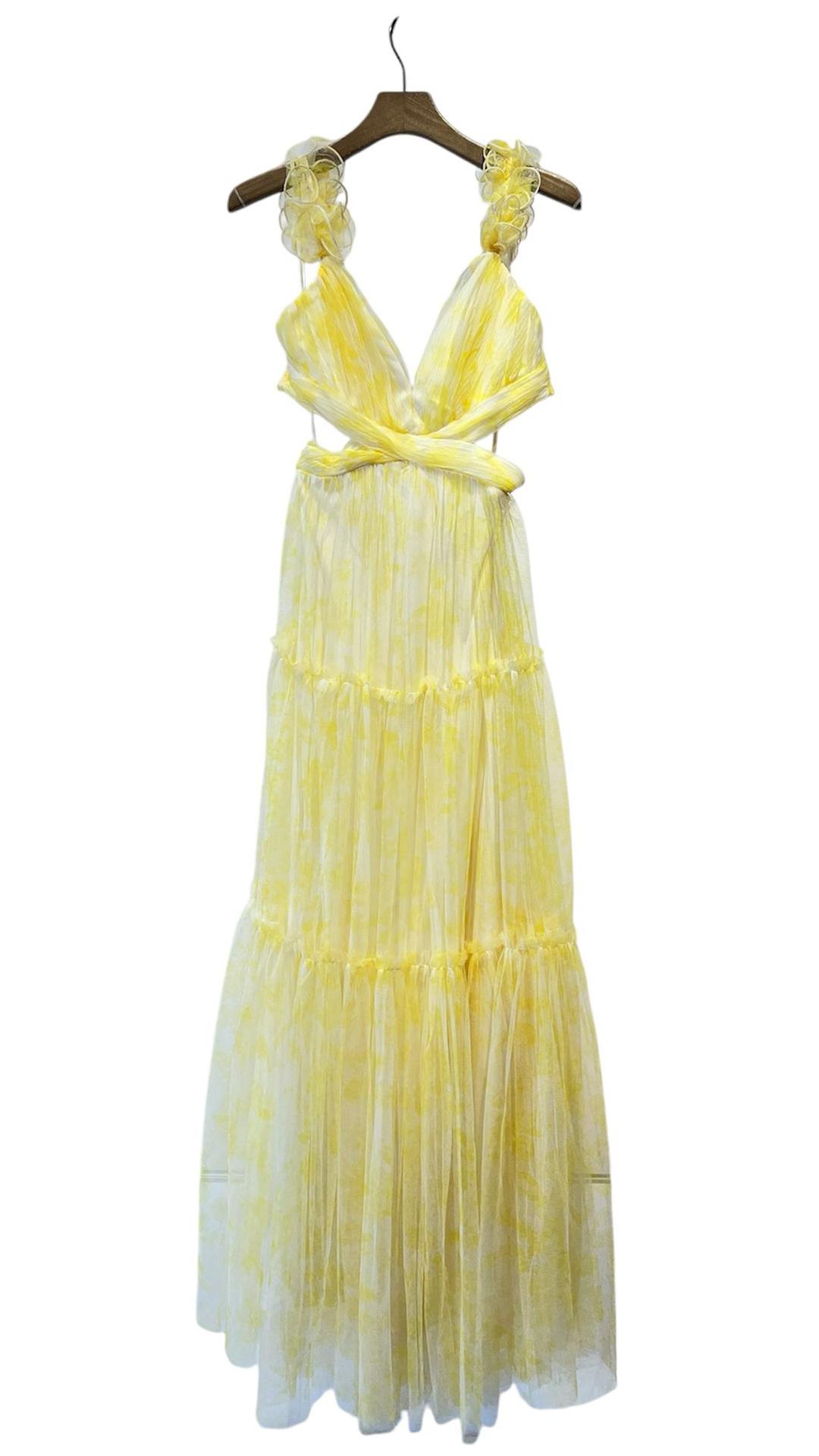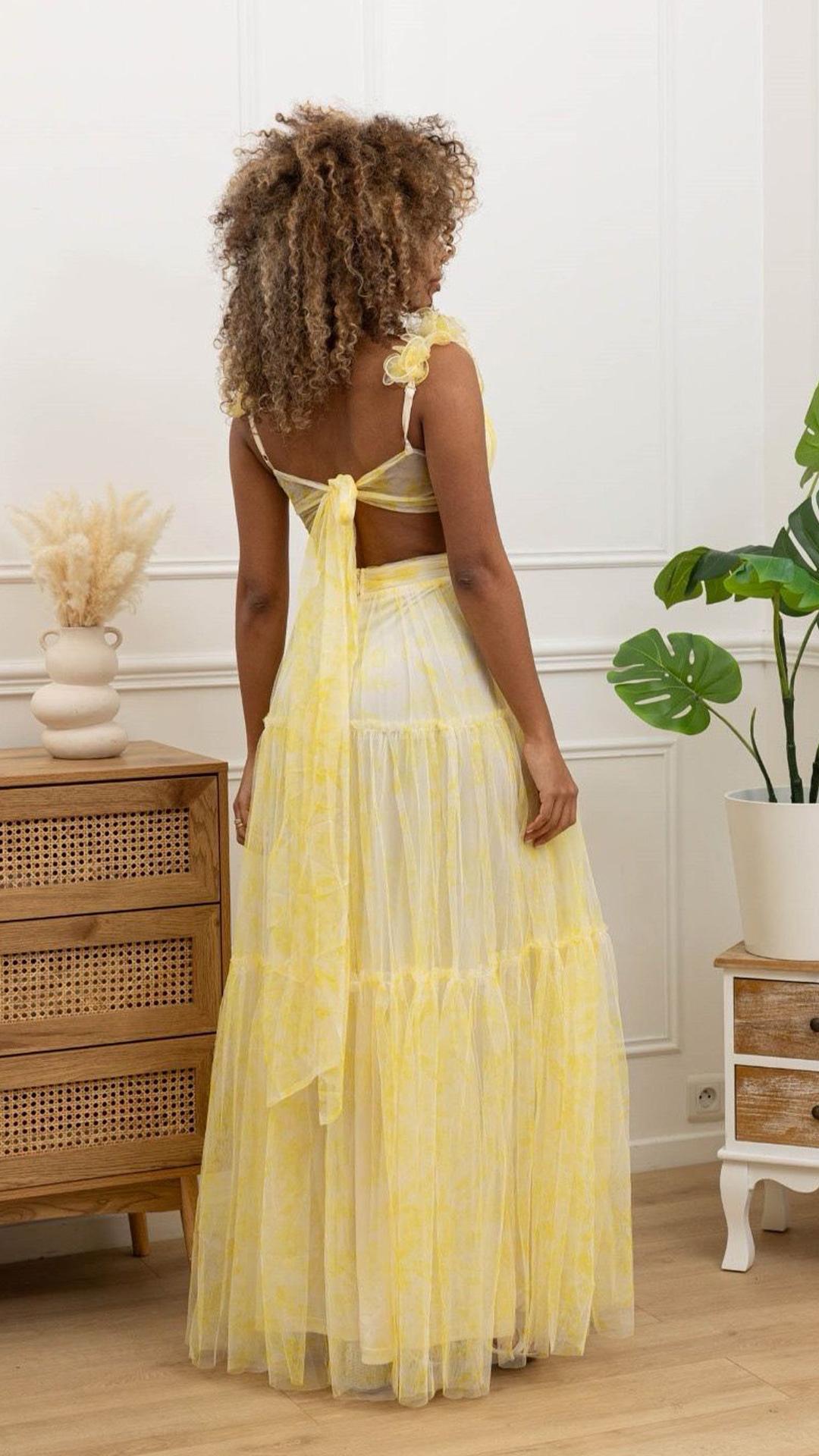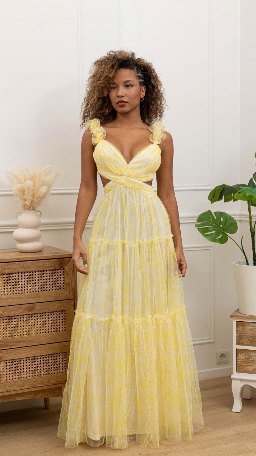 VESTIDO DE TUL LARGO CON ESTAMPADO FLORAL