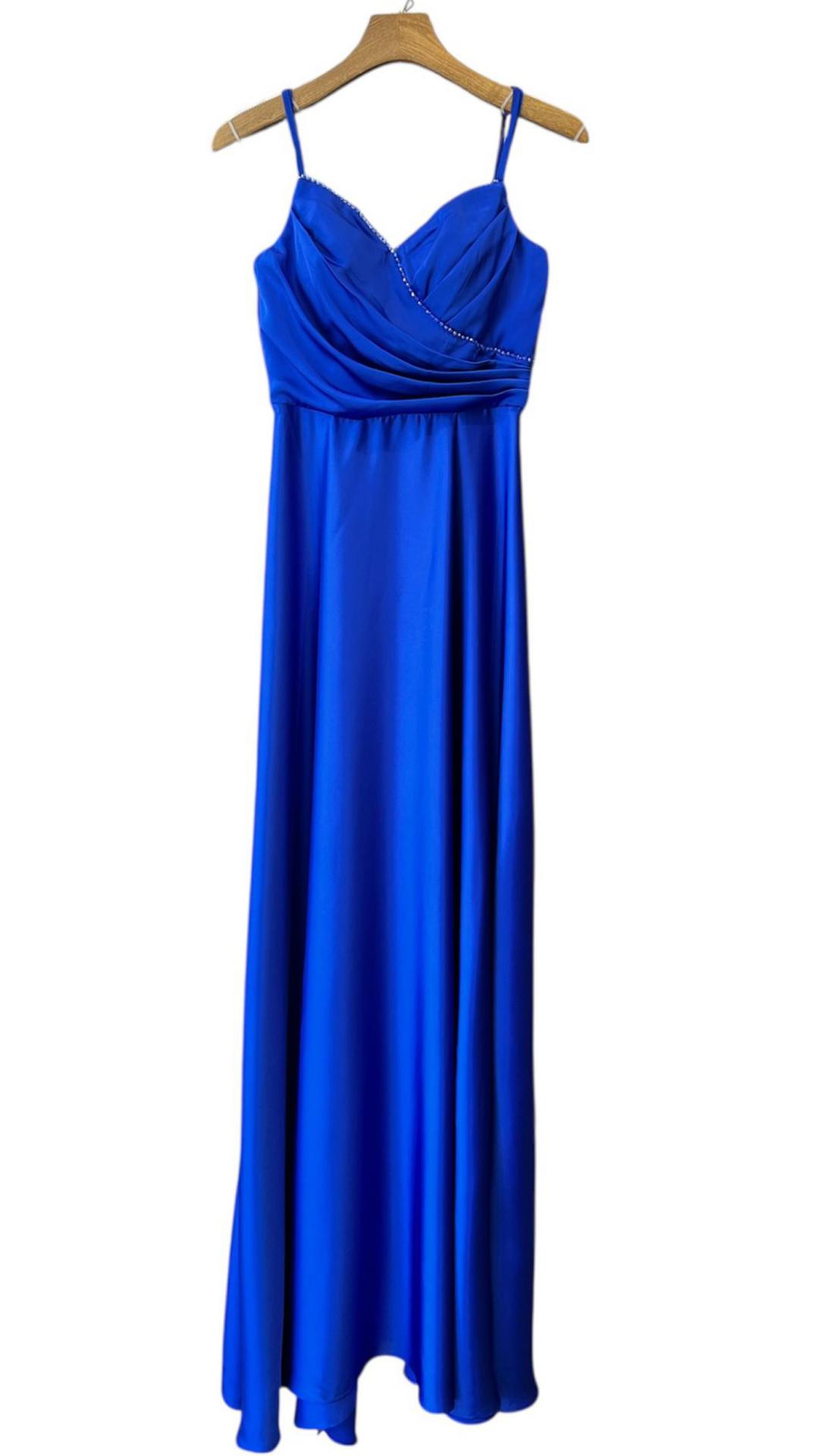 VESTIDO DE SATEN , ESCOTE CORAZON CON PIEDRAS.