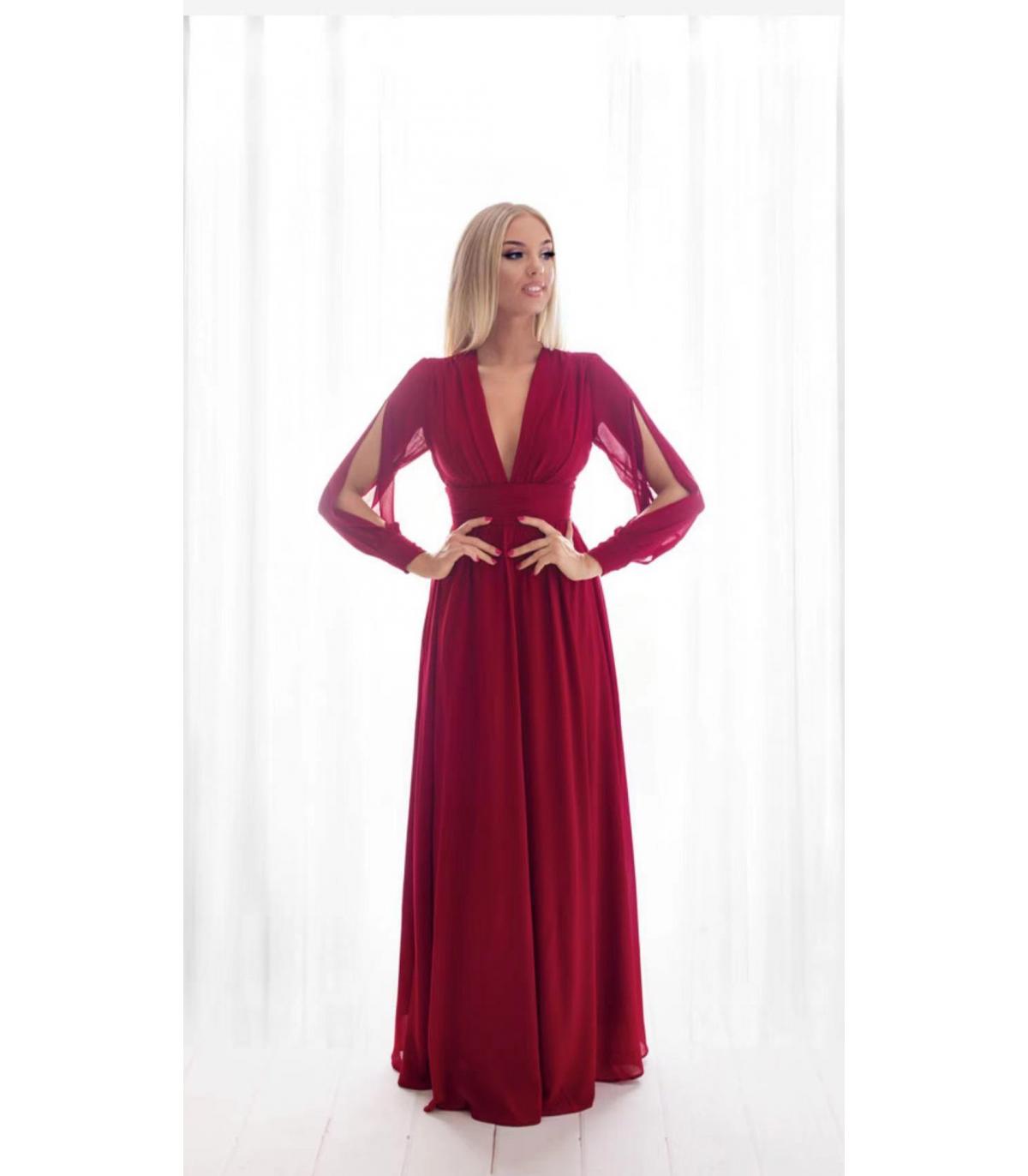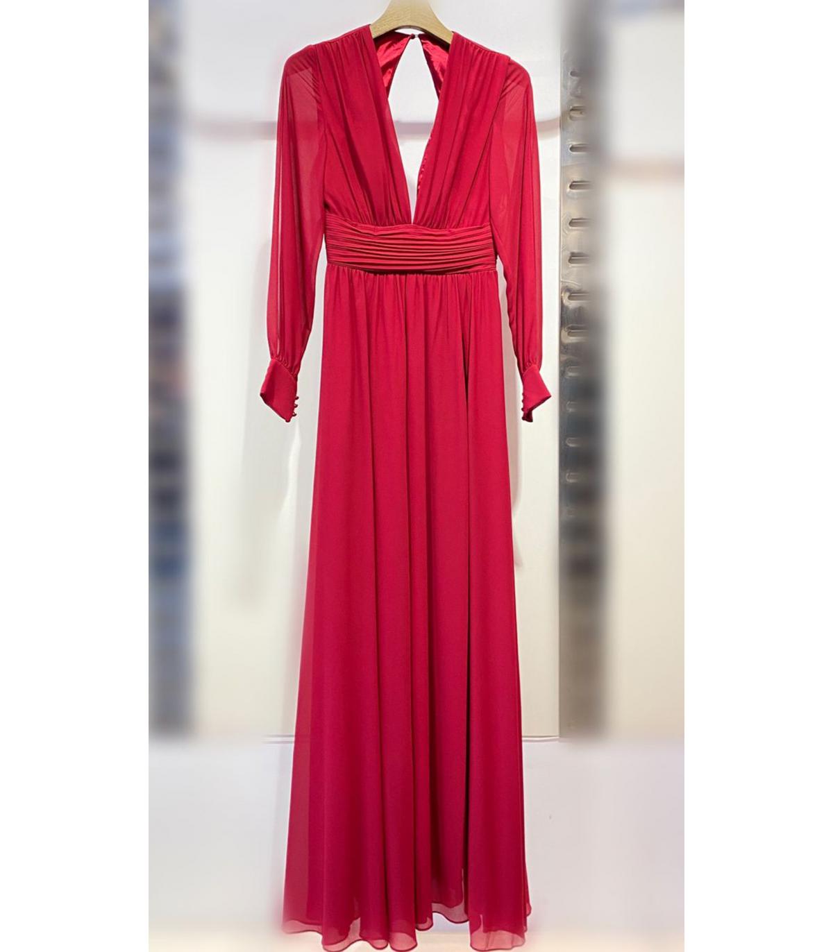 VESTIDO DE GASA LARGO , CON ABERTURAS EN LA MANGA.