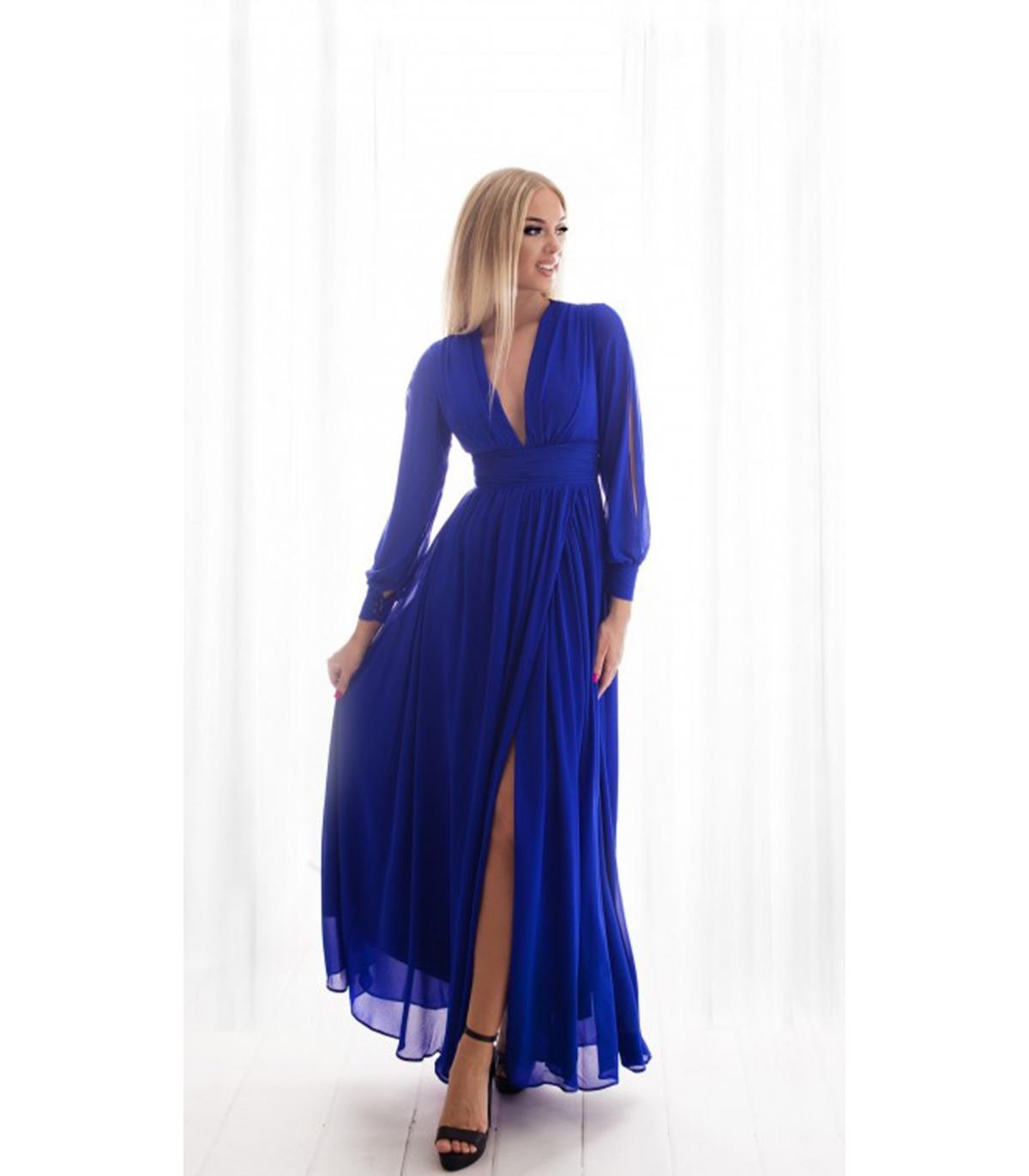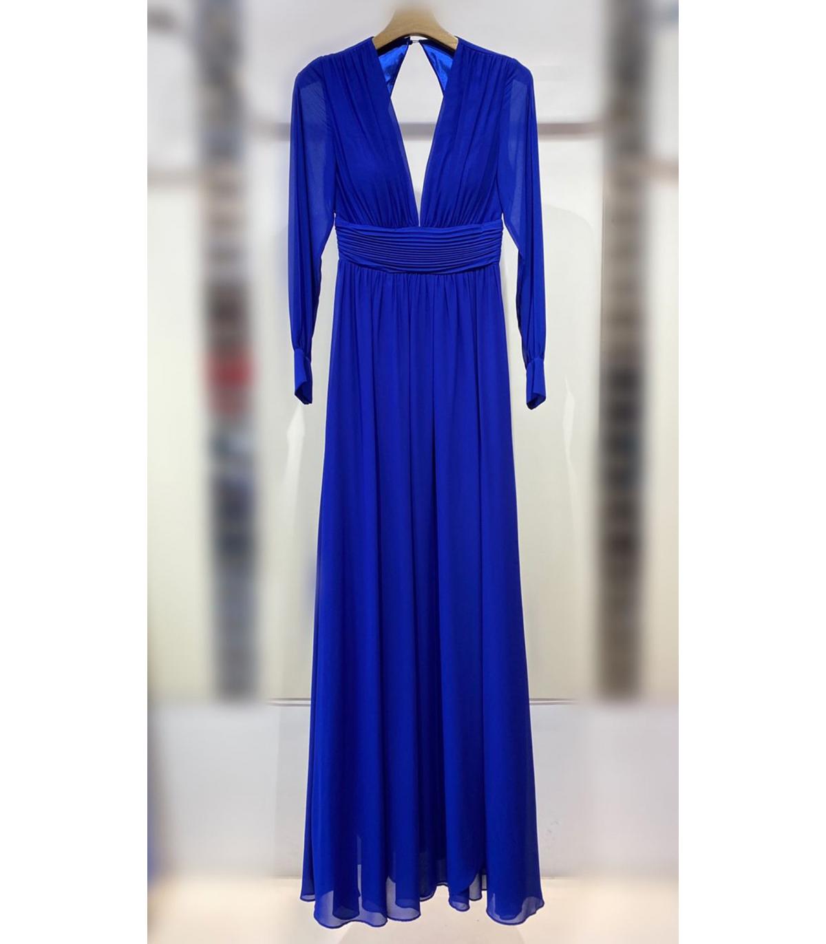 VESTIDO DE GASA LARGO , CON ABERTURAS EN LA MANGA.