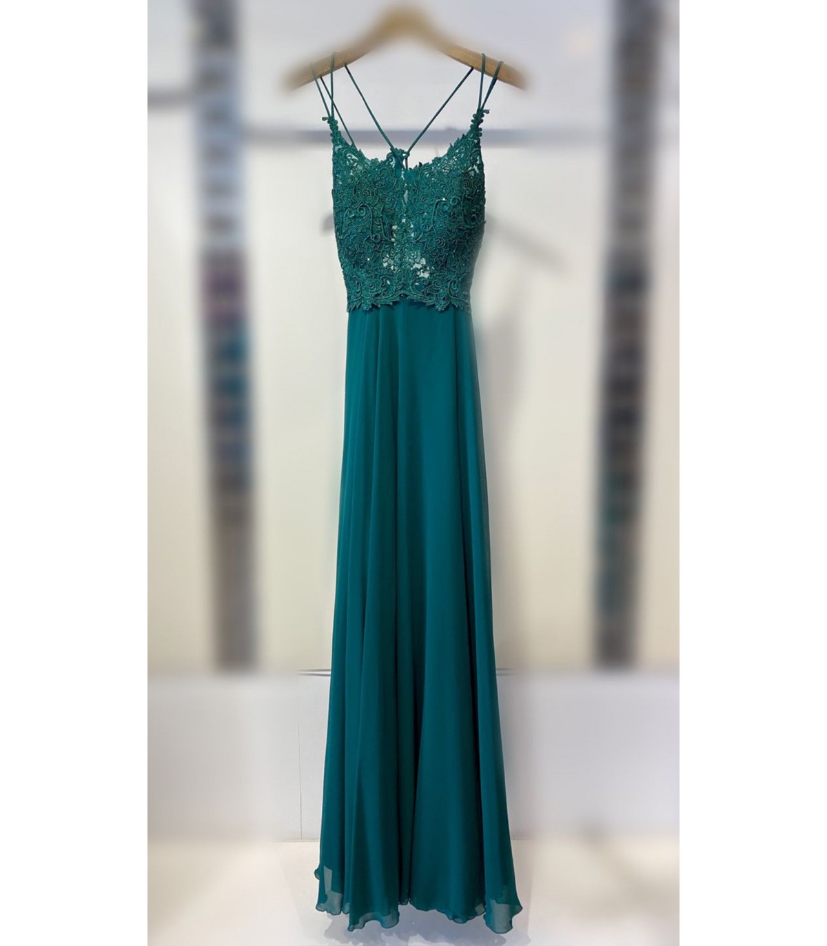 VESTIDO LARGO CON ABERTURA ,TIRANTE FINO, LLEVA BRILLOS EN LA PARTE SUPERIOR