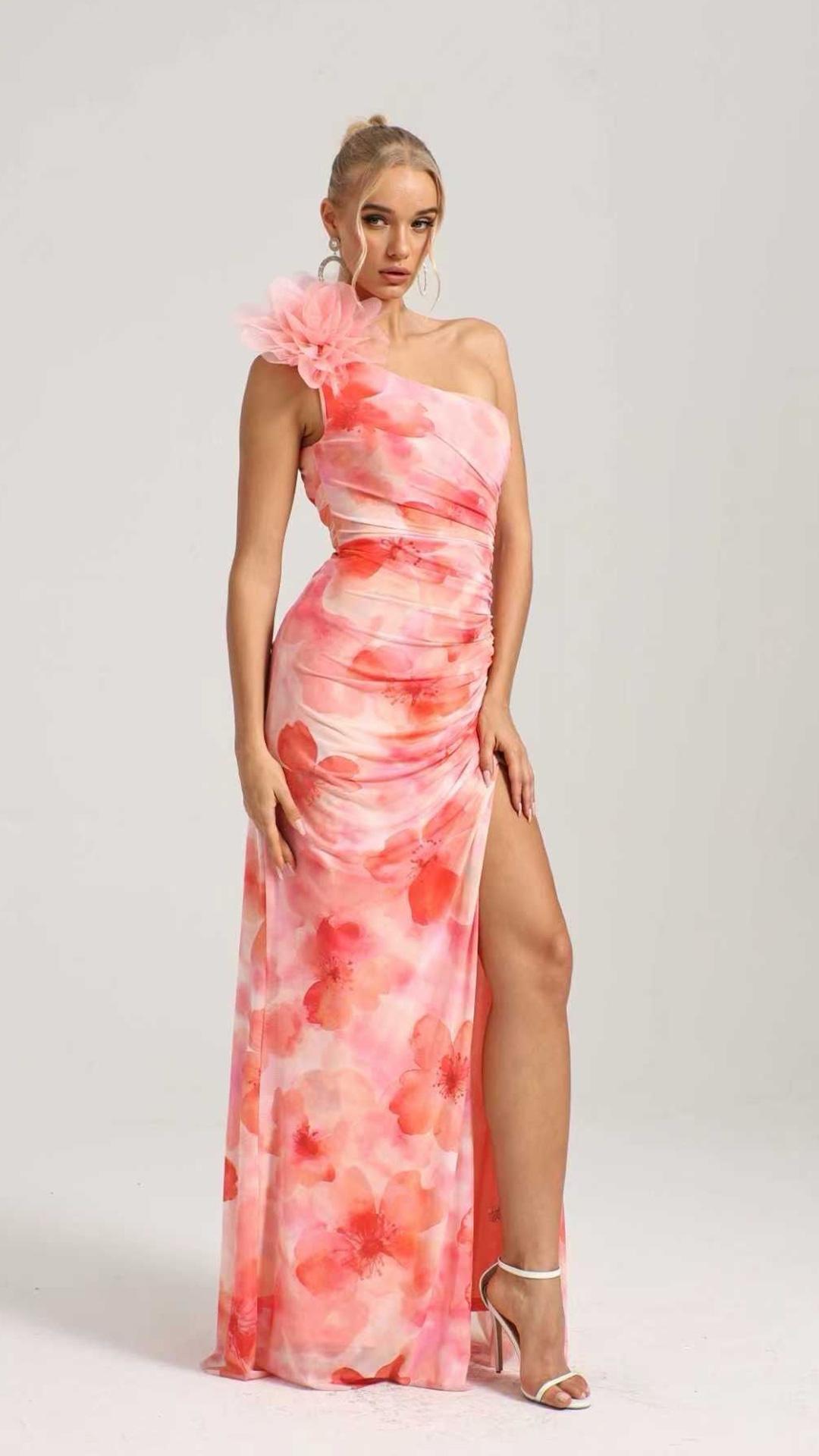VESTIDO DE LICRA DE UN TIRANTE , CORTE SIRENA , DE ESTAMPADO FLORAL